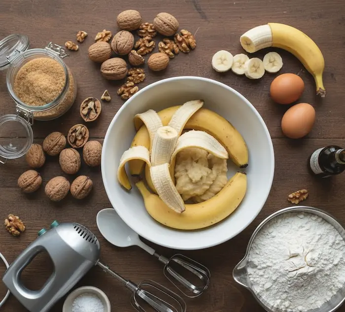 استفاده از موز رسیده: موز کاملاً رسیده طعم شیرینتر و بافت نرمتری به کیک میدهد.