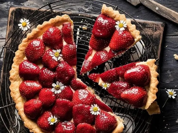 - تارت توت فرنگی : با کرم و توت فرنگی تازه روی خمیر ترد